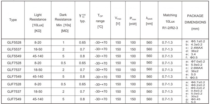 A90 series photoresistors