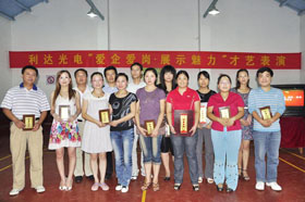 ??????? 本次才藝展示活動有快板、吉他彈唱、獨唱、合唱、詩歌朗誦、舞蹈、小品、魔術(shù)、戲曲等十余種表現(xiàn)形式,棱鏡制造部和透鏡制造二部榮獲本次活動組織獎。棱鏡制造部的舞蹈《天竺少女》,榮獲才藝展示文藝類表演一等獎。借助此次活動的平臺,職工們積極參與,充分展示了的自己獨特才藝,激發(fā)了員工的工作熱情和信心。