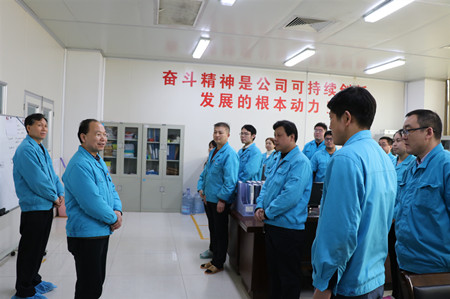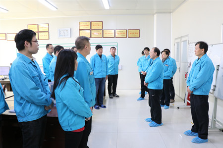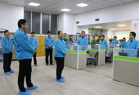 ??????? 2月11日,是公司春節(jié)過后上班的第一天。上午9時許,公司董事長李智超、總經理付勇帶領領導班子成員深入各職能部門、各事業(yè)部看望廣大員工。公司領導一行步伐鏗鏘,每到一處都向廣大職工送去新年的祝福,并簡要介紹了公司發(fā)展形勢,勉勵廣大職工在新的一年繼續(xù)發(fā)揚奮斗精神,推動各項工作再上新臺階。