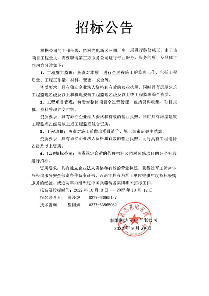 - (2022-09-29)光電新區(qū)三期廠房一層裝修施工的招標公告